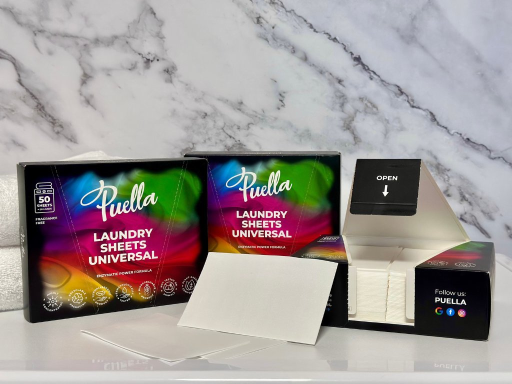 Experimentați puterea de curățare Puella într-un format nou! Foile noastre de detergent conțin aceeași concentrație ridicată de ingrediente active ca detergentul nostru gel, dar într-un ambalaj mai mic și mai ecologic.