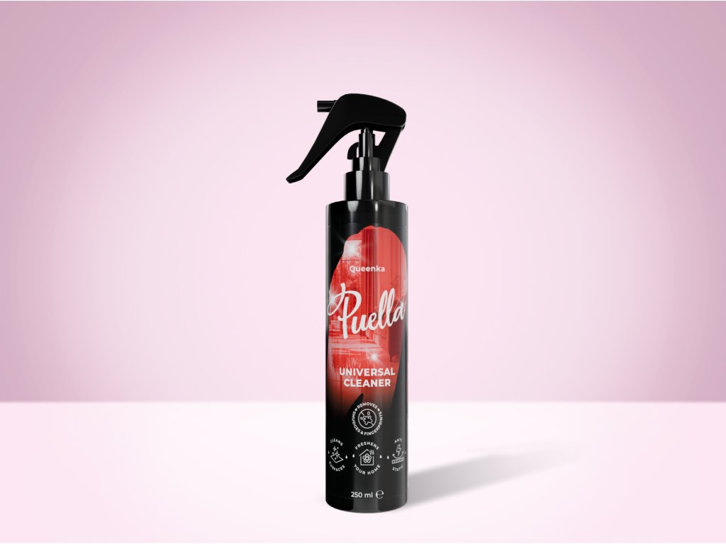 Spray-ul universal de curățare Puella cu fragranța Queenka și pH-ul echilibrat. Curăță delicat și eficient toate suprafețele, îndepărtează praful, petele și amprentele și parfumează casa cu aroma voastră preferată.